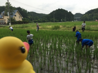 虫に刺されたり、どろんこになったりしながら作業をしていました。
