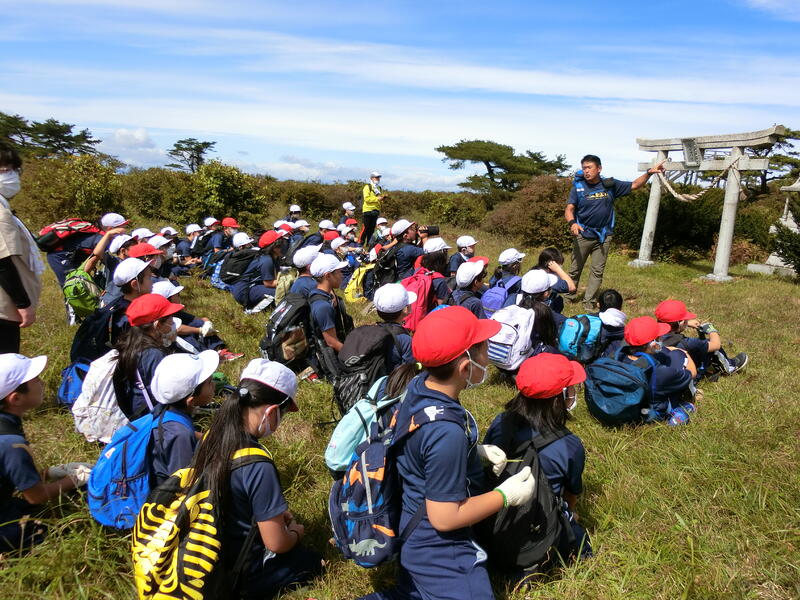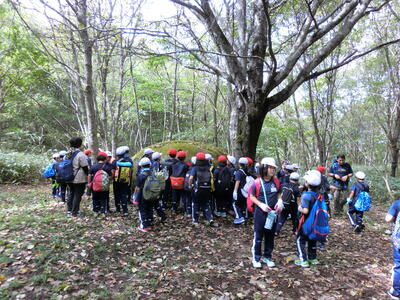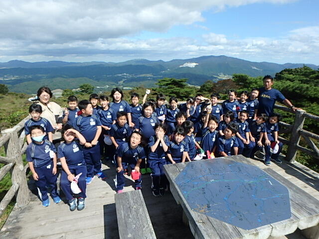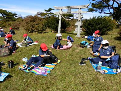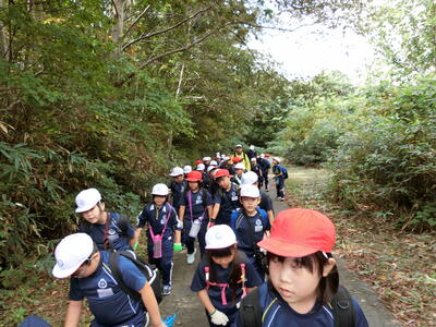秋晴れの空の下,3年生は高柴山に登ってきました。