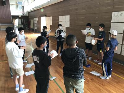 運動会へ向けて,応援団のはじめての顔合わせと練習が昼休みに行われました。