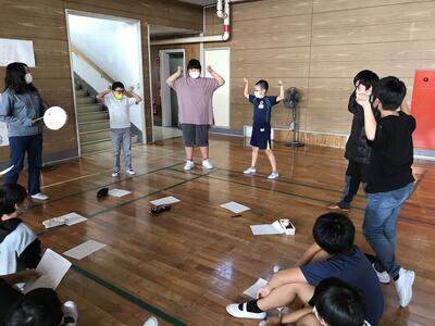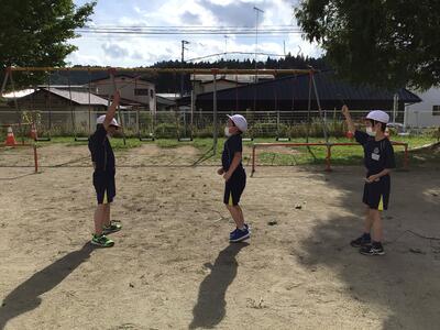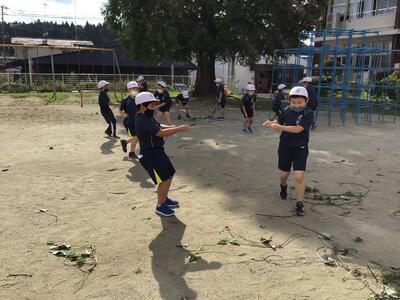 今日は、2年生と5年生が合同で運動会の練習をしました。