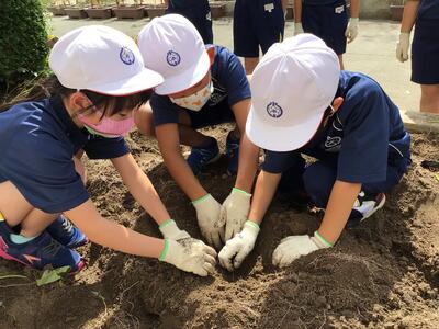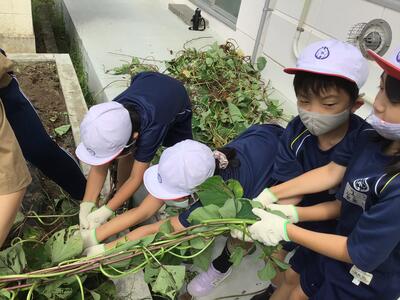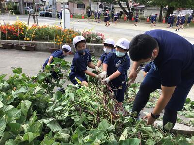 土の中からサツマイモが出てくるたびに、歓声をあげる子どもたち。