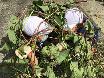 縄跳びに、綱引き…子どもたちの手にかかると、サツマイモのつるも、遊び道具に大変身!