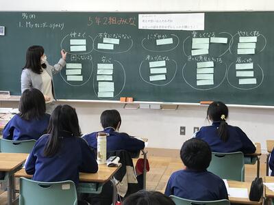 「すてきな行動発見カード+」で記録してきたことをもとに,自分の行動を振り返り,取り組んできた行動同士で集まり,その行動の価値について話し合いました。すてきな行動の良さを発表しました。それぞれ,自分がもうちょっと頑張りたいことの価値について考えることができました。