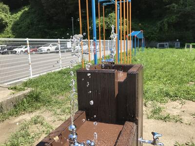 まず,校庭に水飲み場ができました。手を洗ったり水を飲んだりできます。