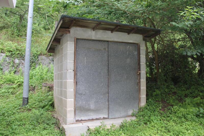 小野小学校の校舎の裏に「ブロック物置」という名前の建物があります。以前は、この中にスコップやクワを入れていましたが、今では使用していません。使っていたころは、このとびらを開けると、何百ひきというカマドウマに出会っていました。ここ数年、誰もここを開けていないので、中に何が住んでいるかはわかりません。ちなみに、昨年は、この物置のすぐ近くに1m以上のアオダイショウがいました。そして、このまわりには、いつもハクビシンの足跡があります。コウモリのフンもたくさん落ちています。ちょっとこわくてとびらを開ける気がしないブロック物置です。