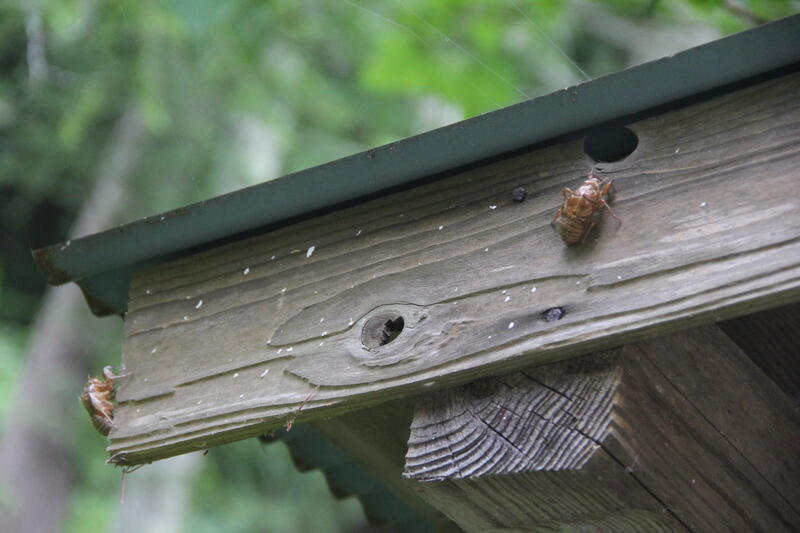 下の写真は、またもや「ブロック物置」です。アブラゼミの幼虫に大人気です。またぬけらがらが増えていました。
