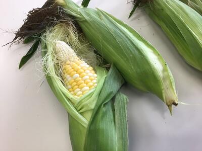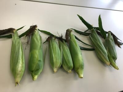 花壇に植えて、2年生みんなで育てていたとうもろこしが、とってもよく育っていたので収穫しました。とっても美味しそうです!