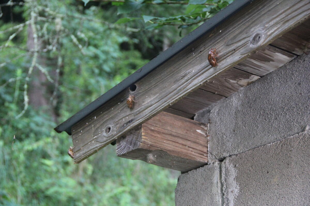 一つは、アブラゼミの大量発生です。このブロック物置に全部で、9つのぬけがらがついていました。先日は1本の木に4つのぬけがらがついているのを発見しましたが、ブロック物置の9つはすごい数です。なぜ、こんなにブロック物置が人気なのかはわかりません。そして、今年の夏はアブラゼミが多いような気がしませんか?