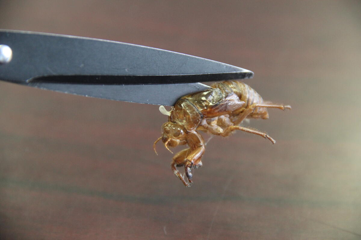 その白い糸の正体をさぐるために、はさみでぬけがらを切ってみましょう。
