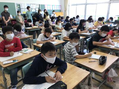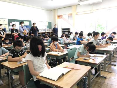 せっかく,PTA奉仕作業に来校頂いたので,2校時目ご都合のつく方に参観していただきました。