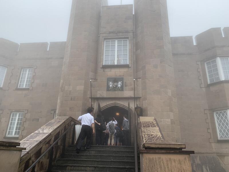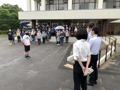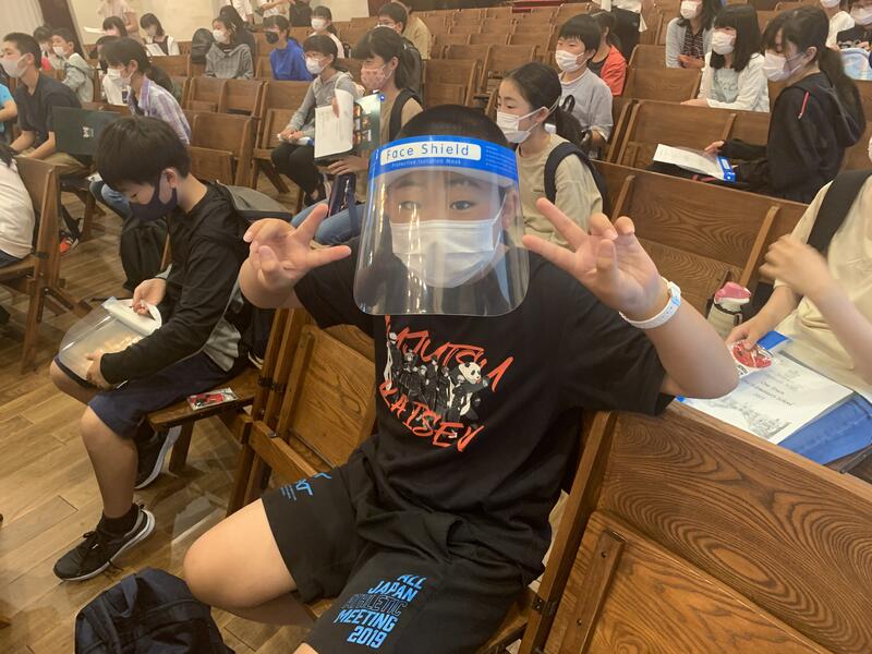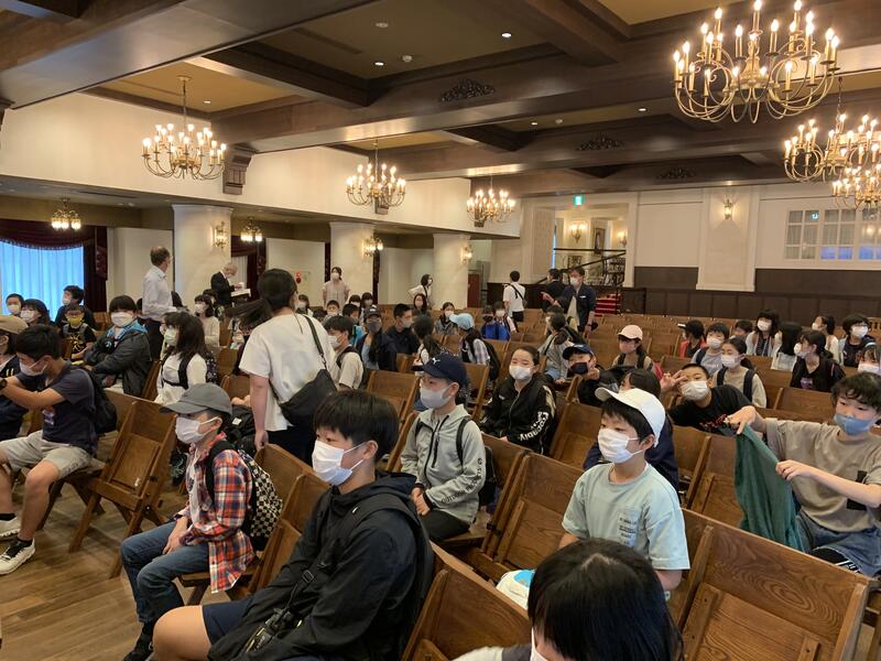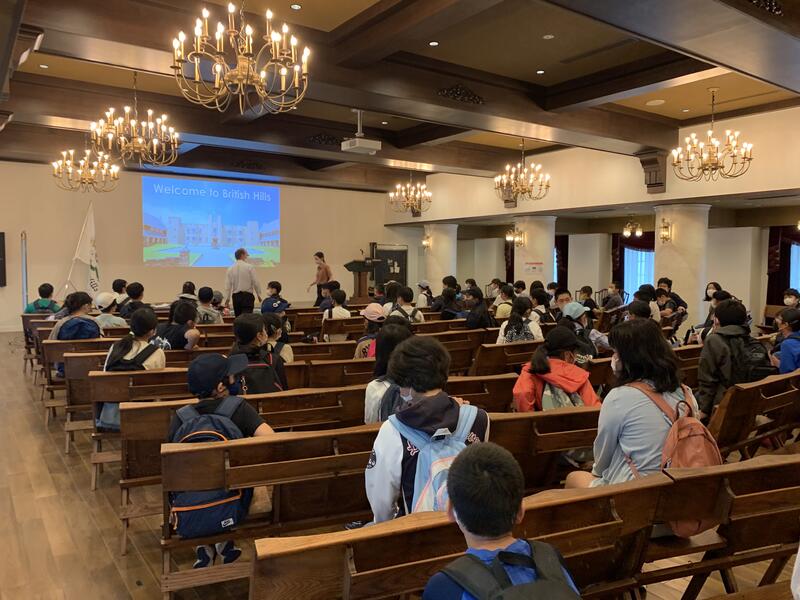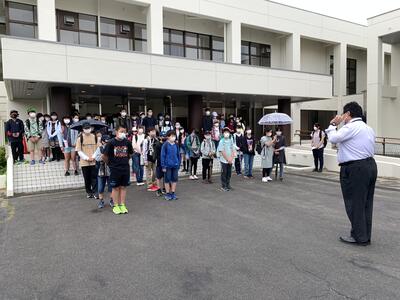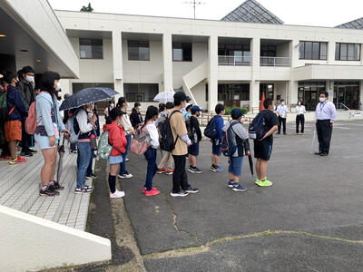 6年生は,天栄村にあるブリティッシュヒルズへ向けて出発しました。