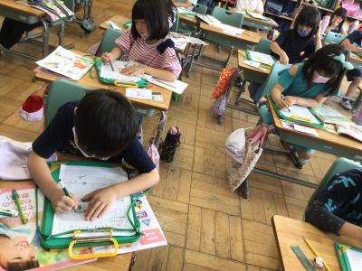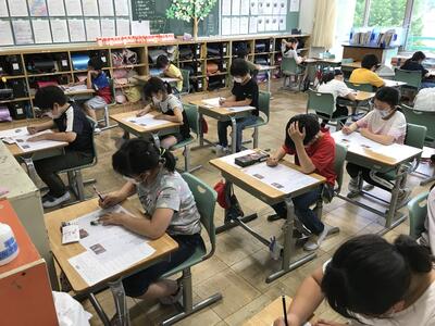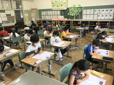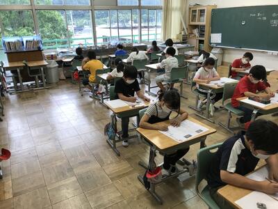 今日は,担任の先生が出張でしたので,そのまとめのテストに取り組みました。