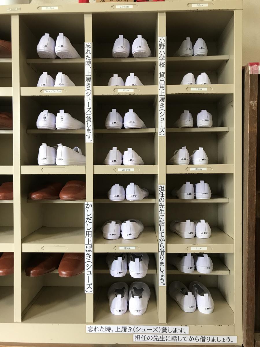 上履きを忘れた時のために,児童用の上履きを準備しました。