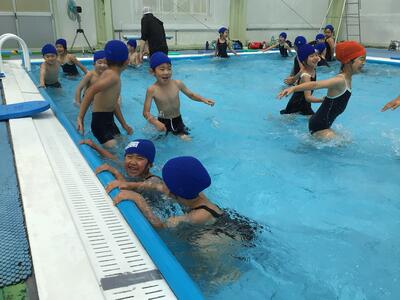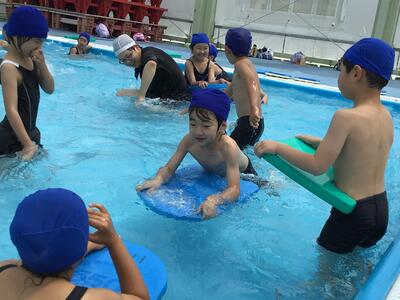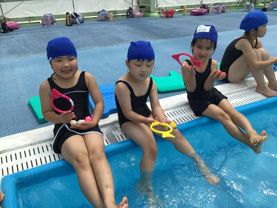 流れるプール、ばた足、だるまうき、けのび、石拾いなどを楽しみました。