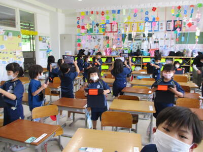 とっても楽しそうに写真を撮り、提出箱に送り、テレビでみんなで鑑賞。