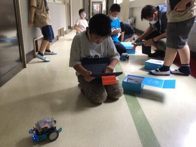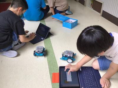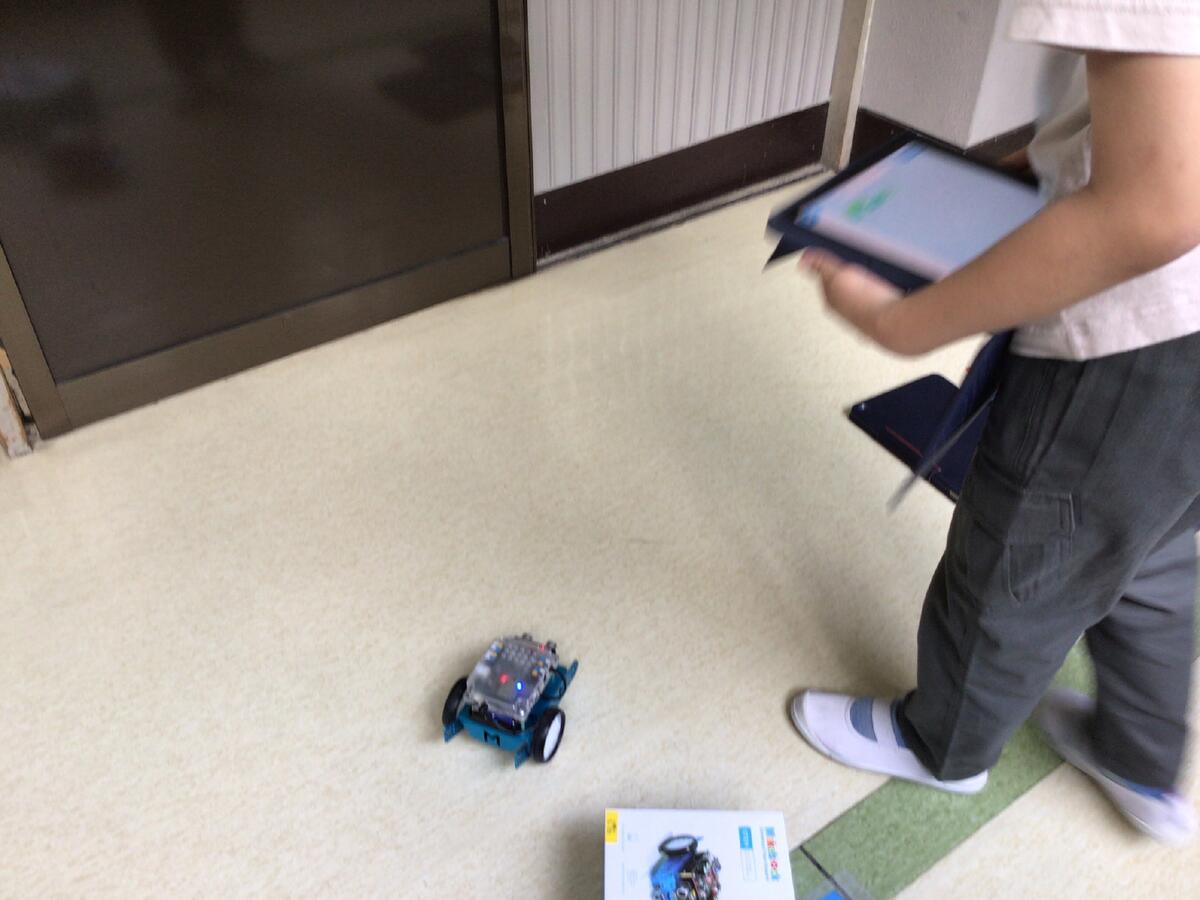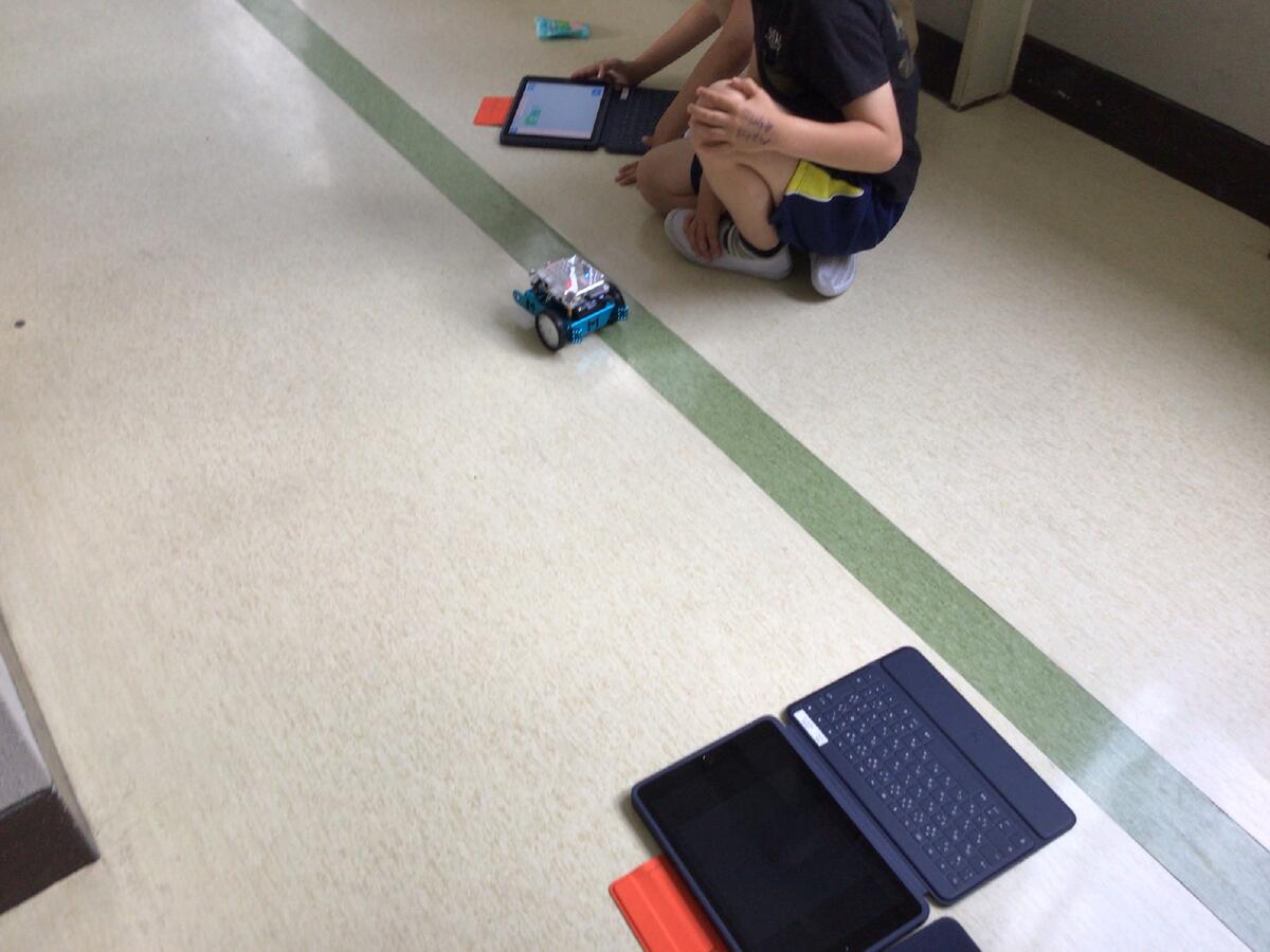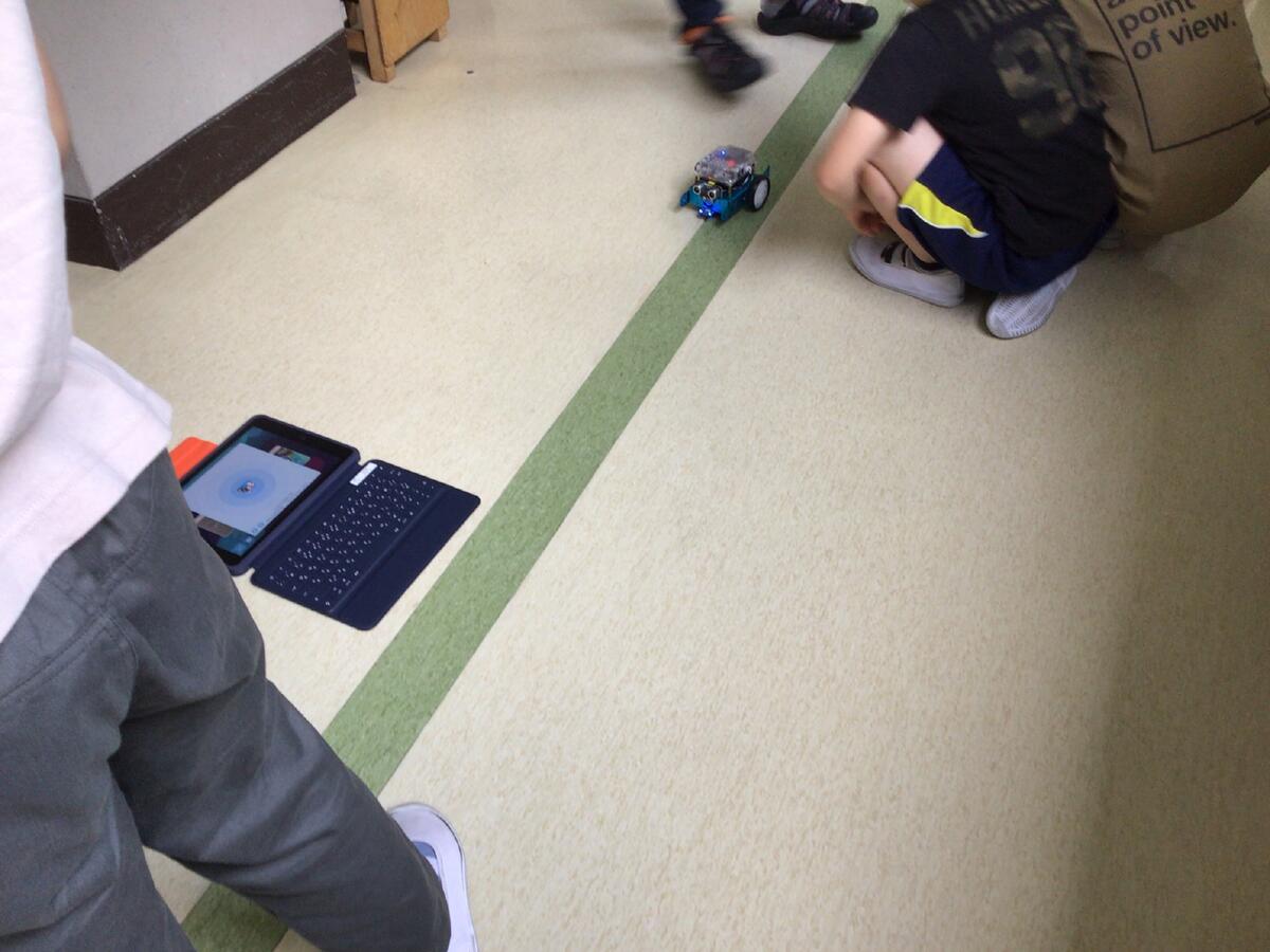 mbot班は,プログラムで操作するmbotを動かしていました。