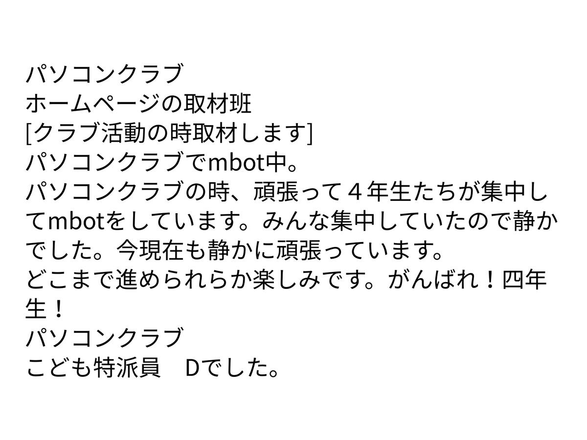 パソコンクラブは,mbot 班,ホームページ取材班,その他に分かれて活動中です。