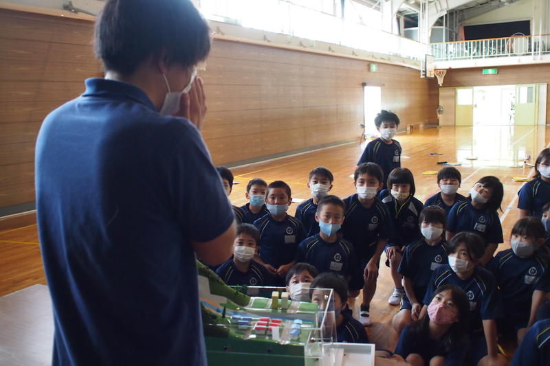 4年生全員が体育館に集まり、県中建設事務所の方からのお話を聞きました。