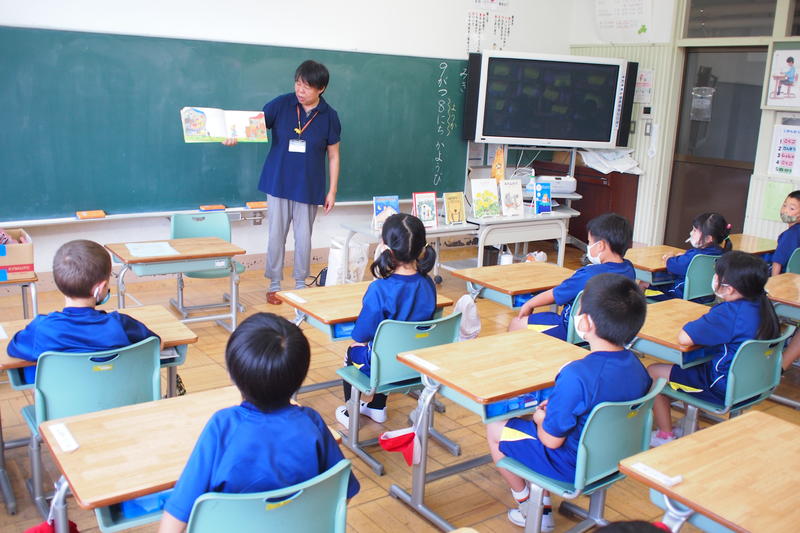 文化の館の職員の方に来ていただき、たくさんの本を読んでいただきました。