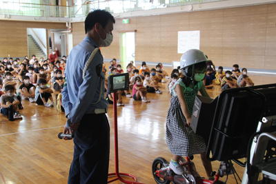 低学年は,道路の歩き方について,中・高学年は,自転車の乗り方を指導いただきました。