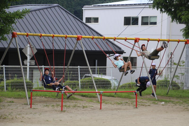 普段は低学年に遠慮しているのでしょうが、今日は思いっきりブランコなどを楽しんでいます。