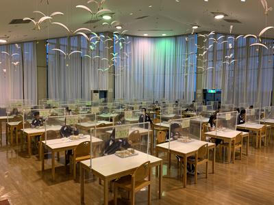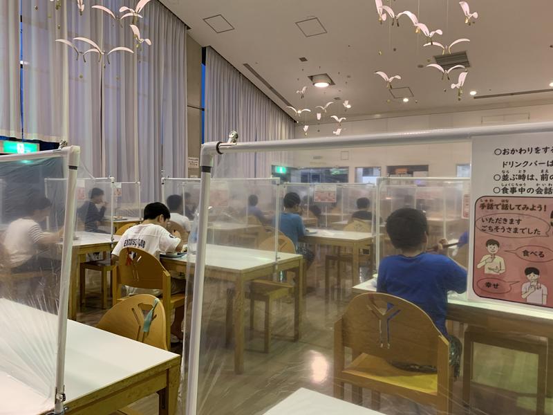 夕食は,本館食堂でいただいています。おかわりのドリンクバーが人気です。