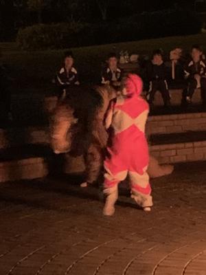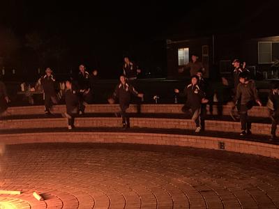 森の妖精の呪文を唱えて火がともりました。各種スタンツやダンスで盛り上がっています。