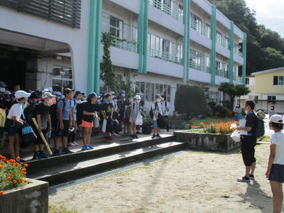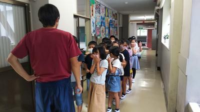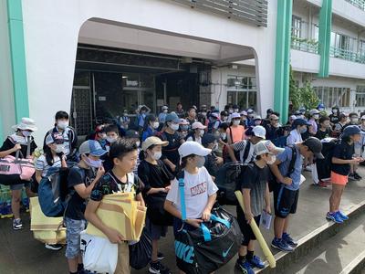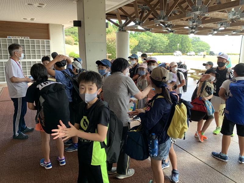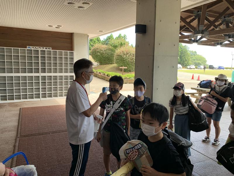 暑いので熱中症や雷に気をつけて活動します。入り口での体温チェックも全員無事クリアしました。