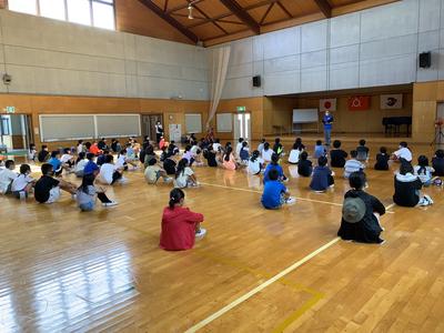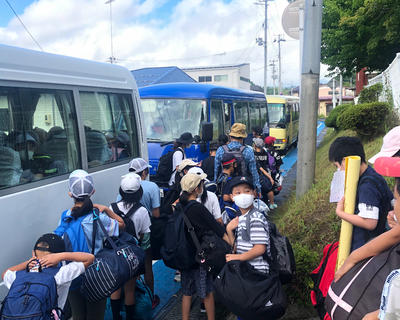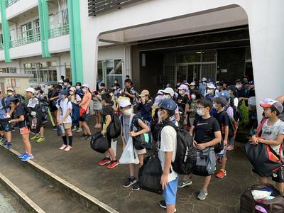 5年生は,出発式をしてから,いわき海浜自然の家に宿泊学習に出発しました。