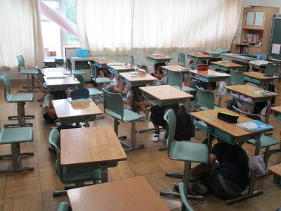 当日はあいにくの雨になってしまったため、校庭への避難は行いませんでしたが、