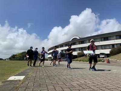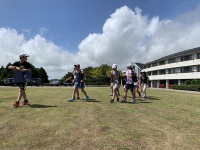 天気に恵まれ,海浜オリエンテーリングのルール説明を聞いて出発するところです。班の友だちと協力してゴールしましょう。