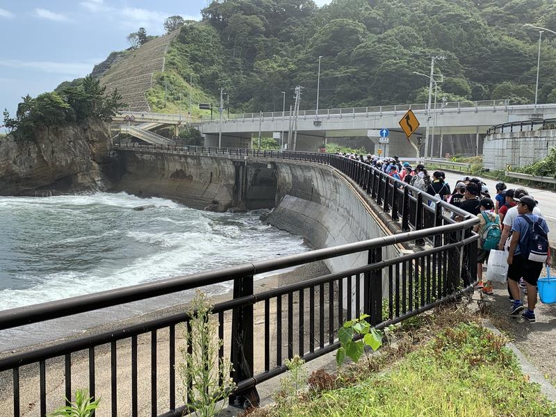 四倉海岸での「砂の芸術」活動に向けて移動中です。