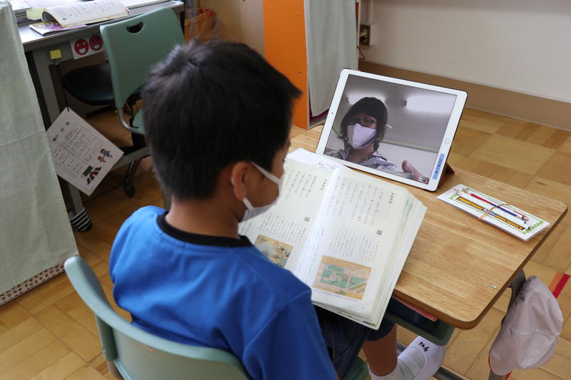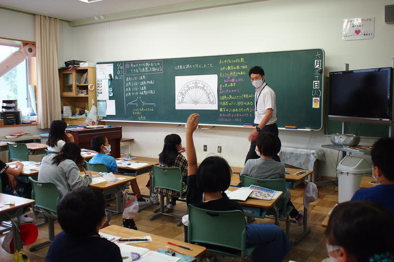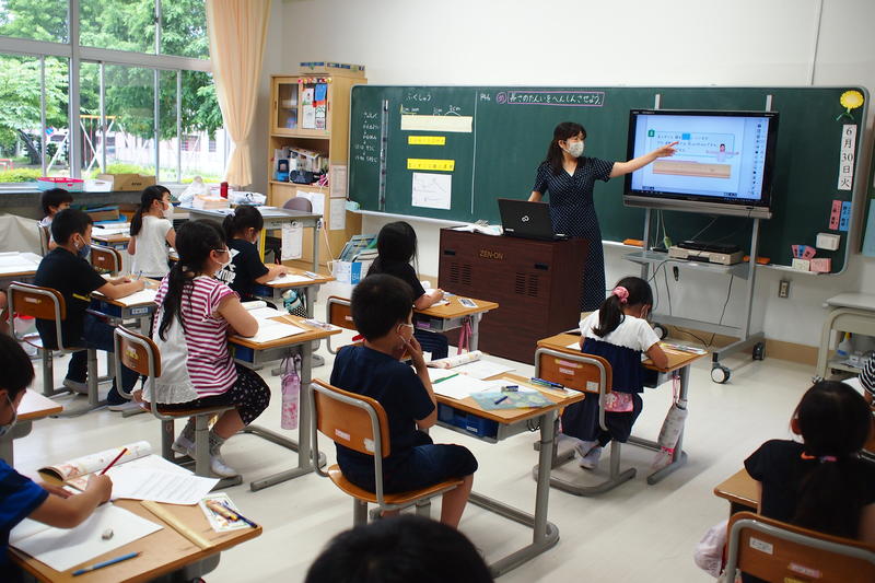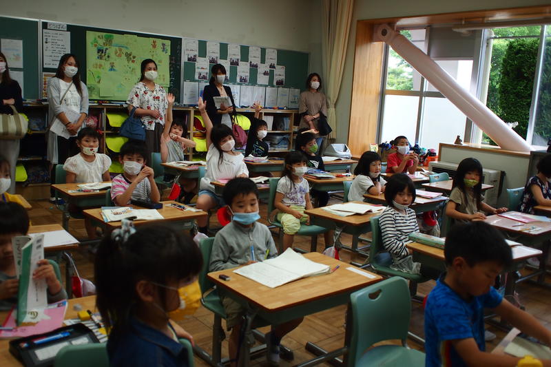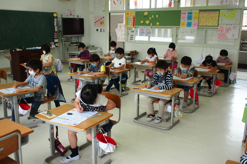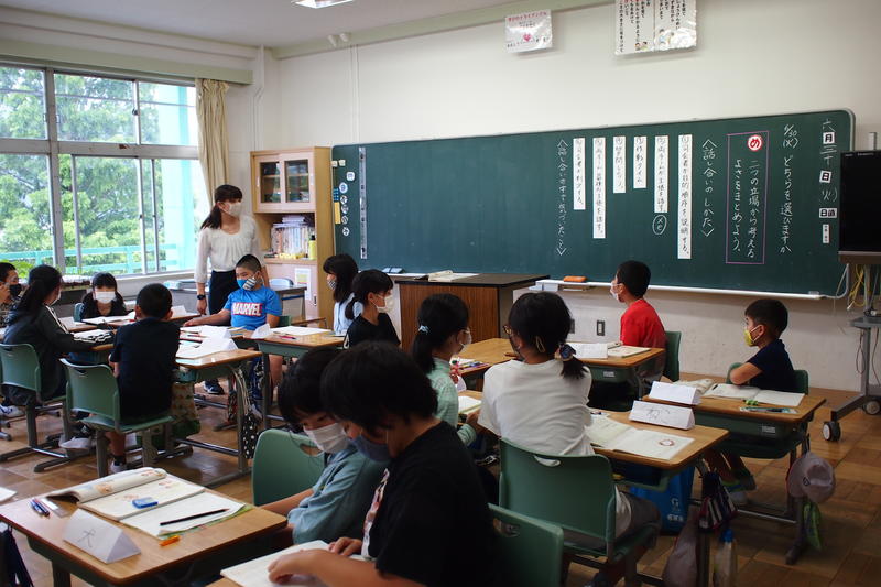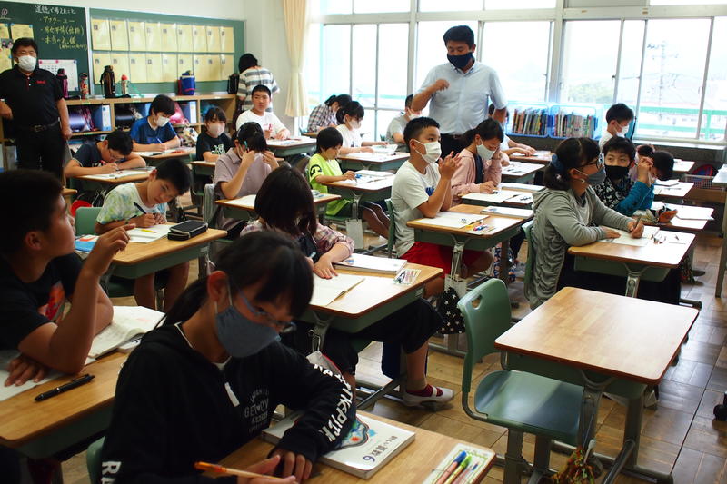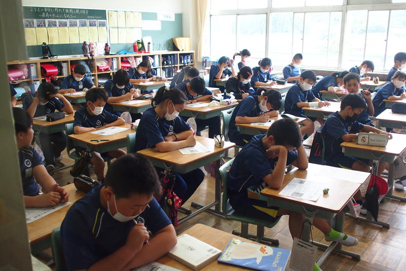 今年度入学した1年生も先生の話を聞いてノートに平仮名を書いたり、最上級生の6年生は算数の文章題に挑戦しどのような式を立てればよいか考えたり俳句のよさをあじわったりと、各学年とも一生懸命授業に取り組んでいました。