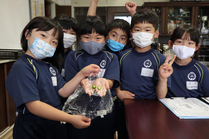 2年生が校長室に、キュウリをもってきてくれました。