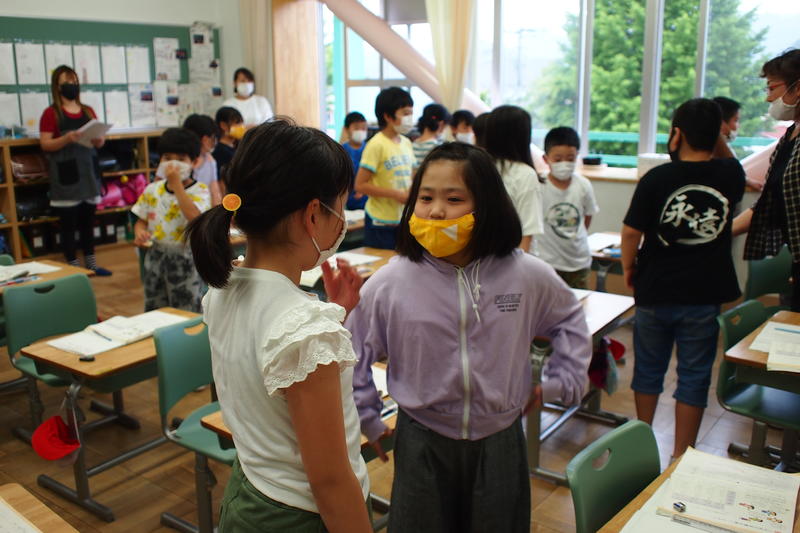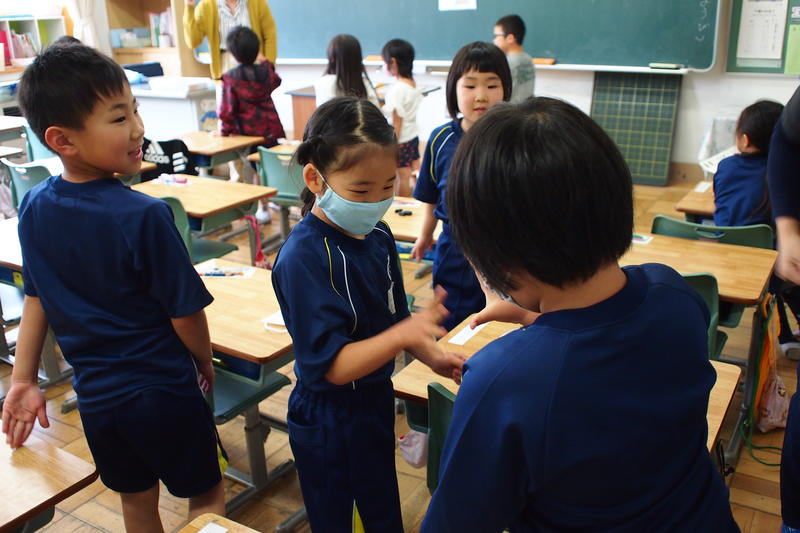 紹介した子どもも、紹介された子どもも、それを聞いていた子どもも嬉しそうに拍手をし合う姿が見られます。