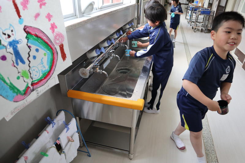 そして、給食前の手洗いや歯みがきで手洗い場が密になっていた西校舎に、先日、新しい手洗い場を増設しました。