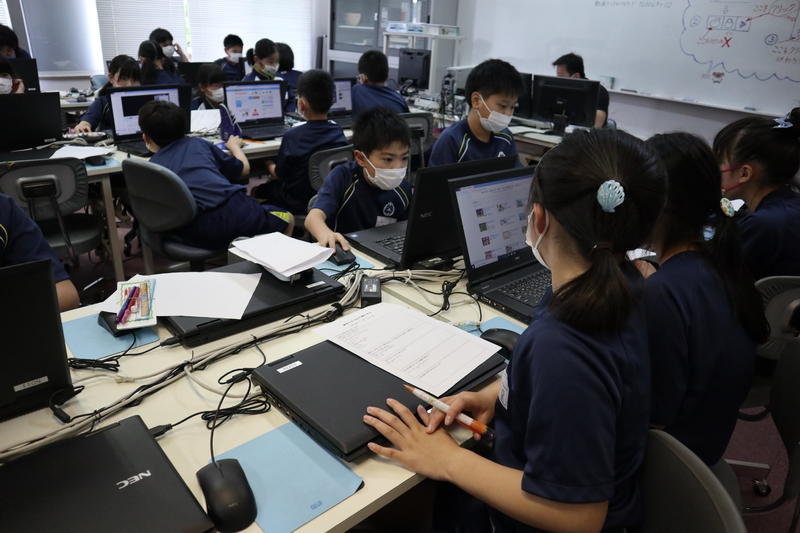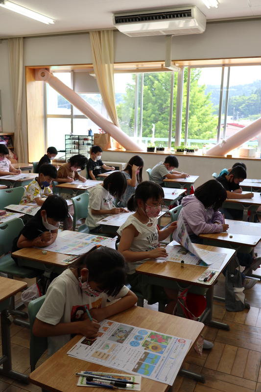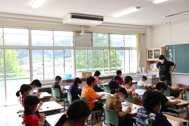 教室に入ると、すーっとすずしい感じがしました。感染防止のため、窓を少し開けて換気をしながらでもクーラーの効果は絶大でした。