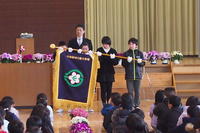 町長さんから渡された校旗。