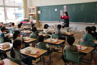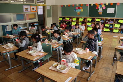 1年生、初めての給食