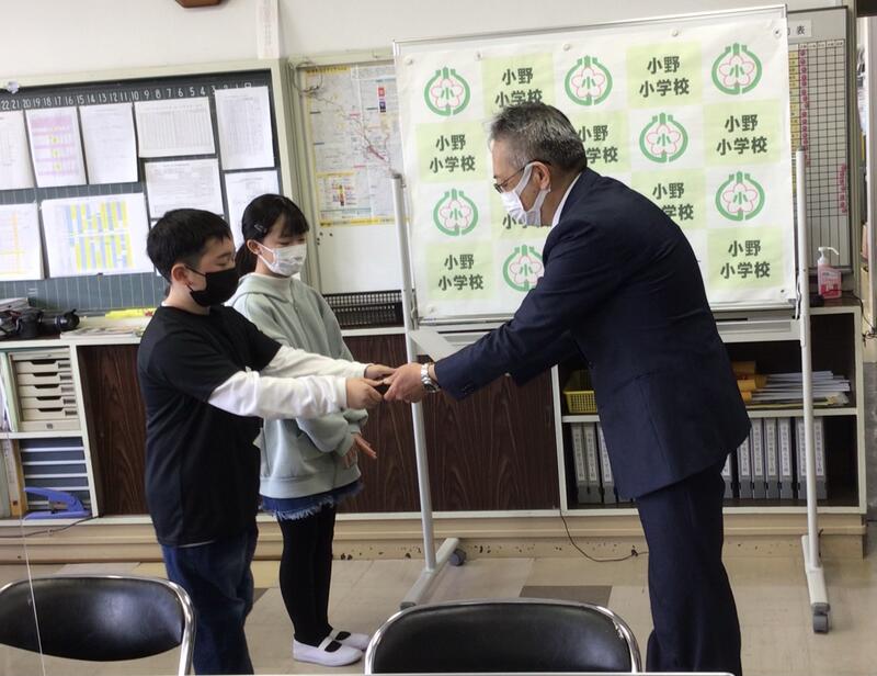 2022年3月10日 18時13分本日、県中建設事務所長様、小野町長様、小野町教育委員会教育長様にご出席いただき、本校校長室にて、橋名板の記念品贈呈式がありました。