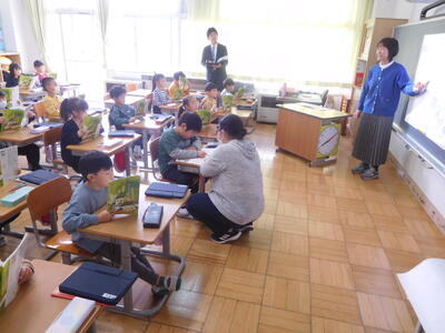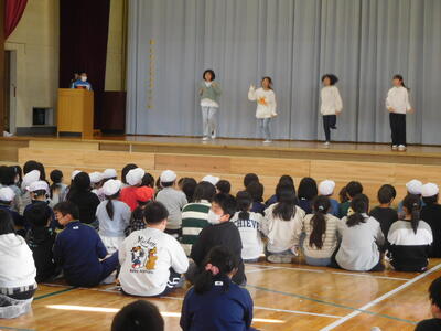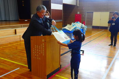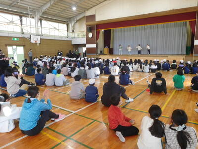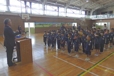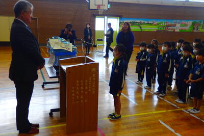 教育長さんから、「読書は心の栄養になります。たくさん読んでください。」と呼びかけられると、子どもたちは元気に「はい」と返事をしていました。