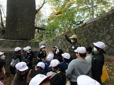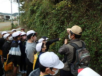 次に、鹽竈神社周辺で草木の観察を行いました。きよちゃん先生の説明を聞きながら周囲の草木を見つめると、新たな発見があり、体験的に森林に関して学ぶことができました。