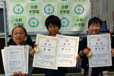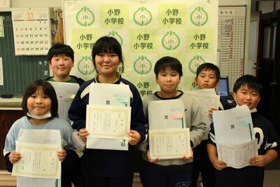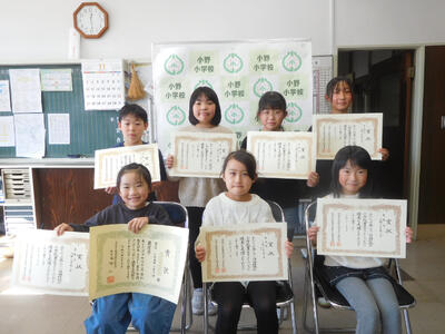 歯科衛生書写コンクールと田村地区小学校書写コンクールの最優秀の皆さんです。