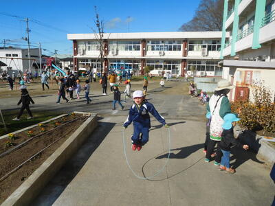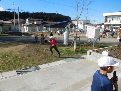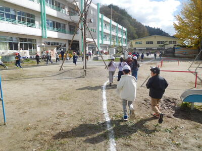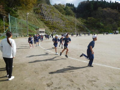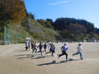 1、2年生は前校庭の200mコースを走り、3年生以上は校庭の200mトラックを走ります。