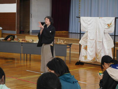 県の芸術鑑賞・体験推進事業を活用し、能楽師の山中様に来校いただき、能楽についてお話をしていただきました。