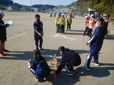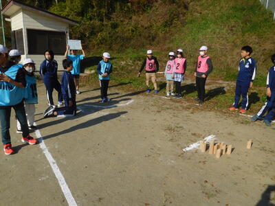 6年生が、モルックの楽しさを味わってもらおうとルール説明から競技進行、アドバイスまで協力して行っていました。