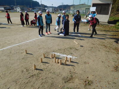 そのグループが、5年生を誘い、モルック体験会を開きました。