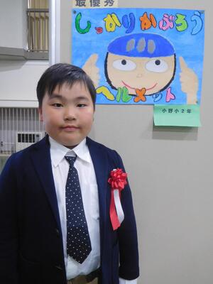 その会場にて、本校の児童が交通安全ポスターコンクールの最優秀賞とて表彰されました。