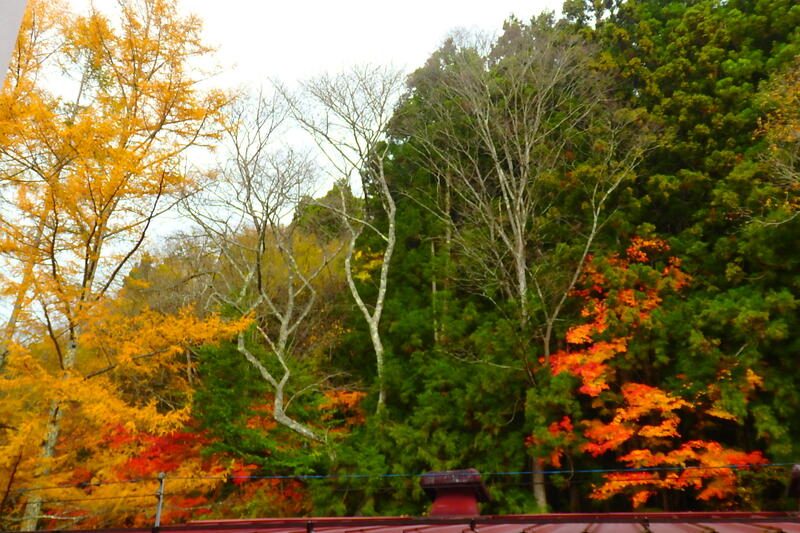 学校正面からは、校舎の陰になってしまいますが、校舎の中からは、廊下の窓越しに色鮮やかな秋を感じることができます。