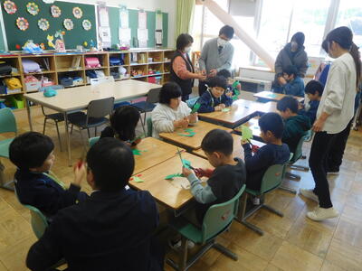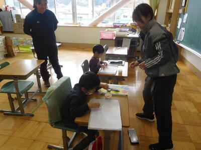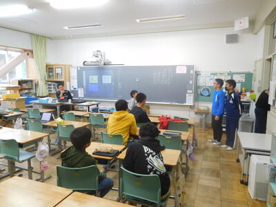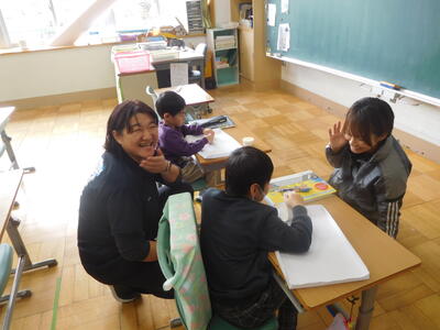 たむら支援学校から3名の子どもが小野小学校に来て、特別支援学級の子どもたちと一緒に活動しました。